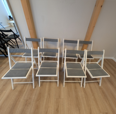 Chaises pliantes avec coussinet blanches